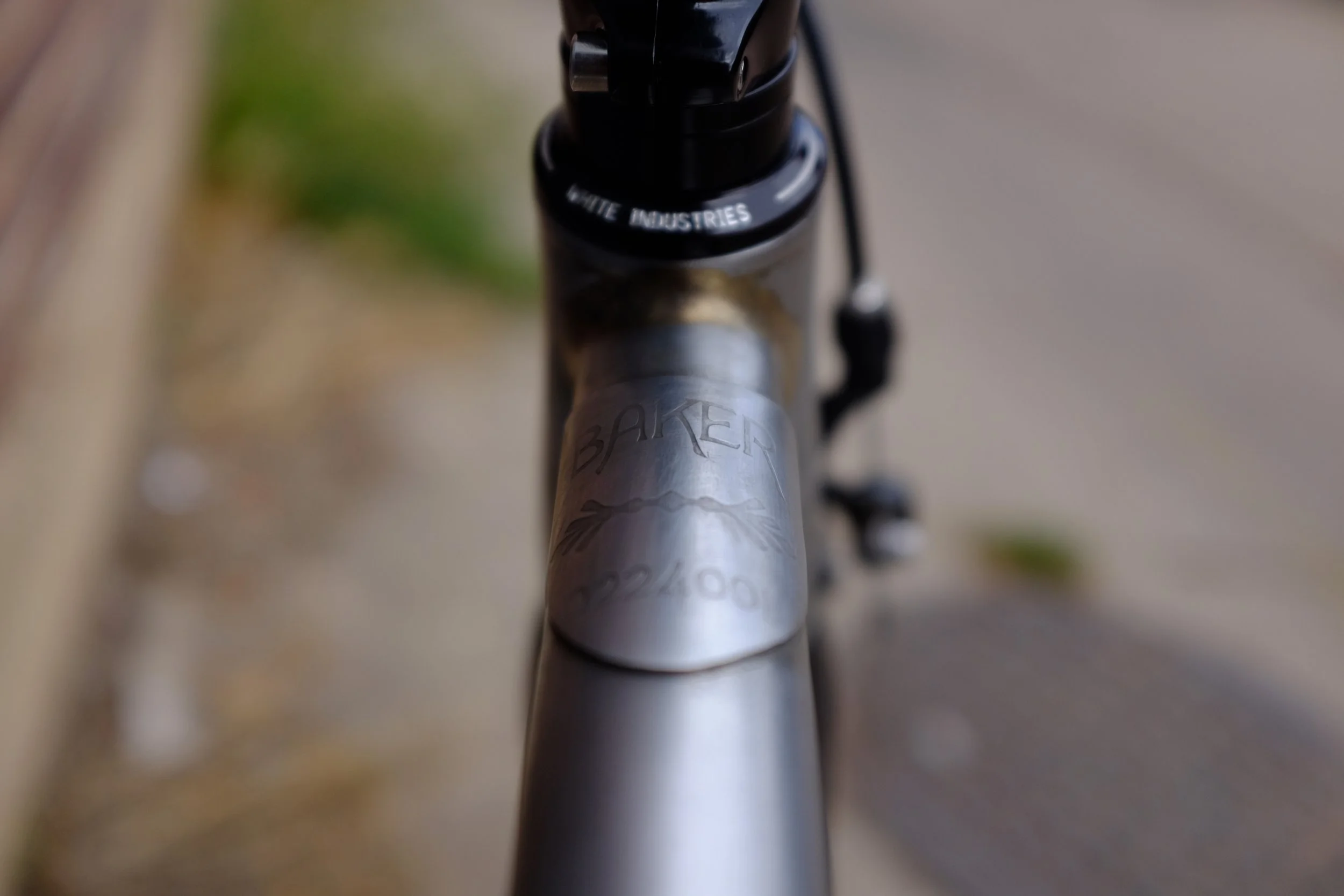 We also decided to go with a top tube badge instead of a head tube badge, and we like the deviation… it may be a feature that appears on many bikes in the future! Also, settled in on an official serialization sequence with this bike; Month, year, order of frame within that month. We only built one frame this February, so this one is 0224001. It seems unlikely we will ever build more than 999 frames in any given month, so this seven digit system will be a nice way to keep track of where each bike sits in our custom build history.